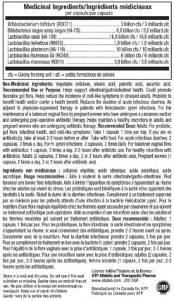 Adultes: 1 capsule, 1 fois par jour. Pour les probiotiques, la flore intestinale, la santé intestinale et les symptômes s’apparentant au rhume: si vous consommez des antibiotiques, prendre 2-3 heures avant ou après. Consommer avec de la nourriture. Pour la diarrhée infectueuse: prendre 2 capsules, 3 fois par jour. Pour un complément de traitement en lien avec la bactérie H. pylori: prendre 2 capsules, 2 fois par jour. Pour l’équilibre de la flore vaginale avec la prise d’antibiotique: 1 capsule, 3 fois par jour, 2-3 heures après les antibiotiques. Pour une microflore saine avec la prise d’antibiotiques: adultes (2 capsules, 2 fois par jour, 2-3 heures après les antibiotiques), femme enceinte (1 capsule, 2 fois par jour, 2-3 heures après les antibiotiques.